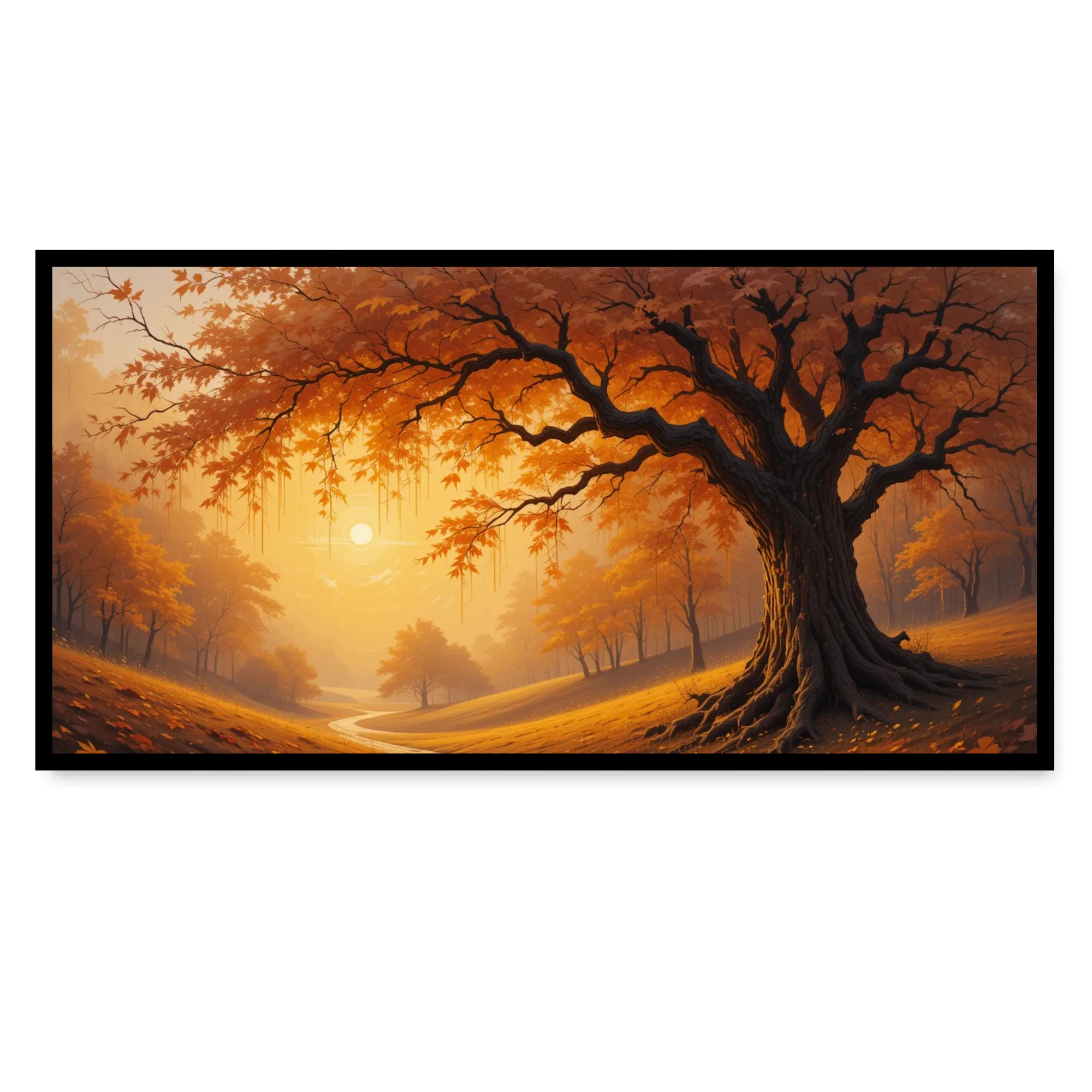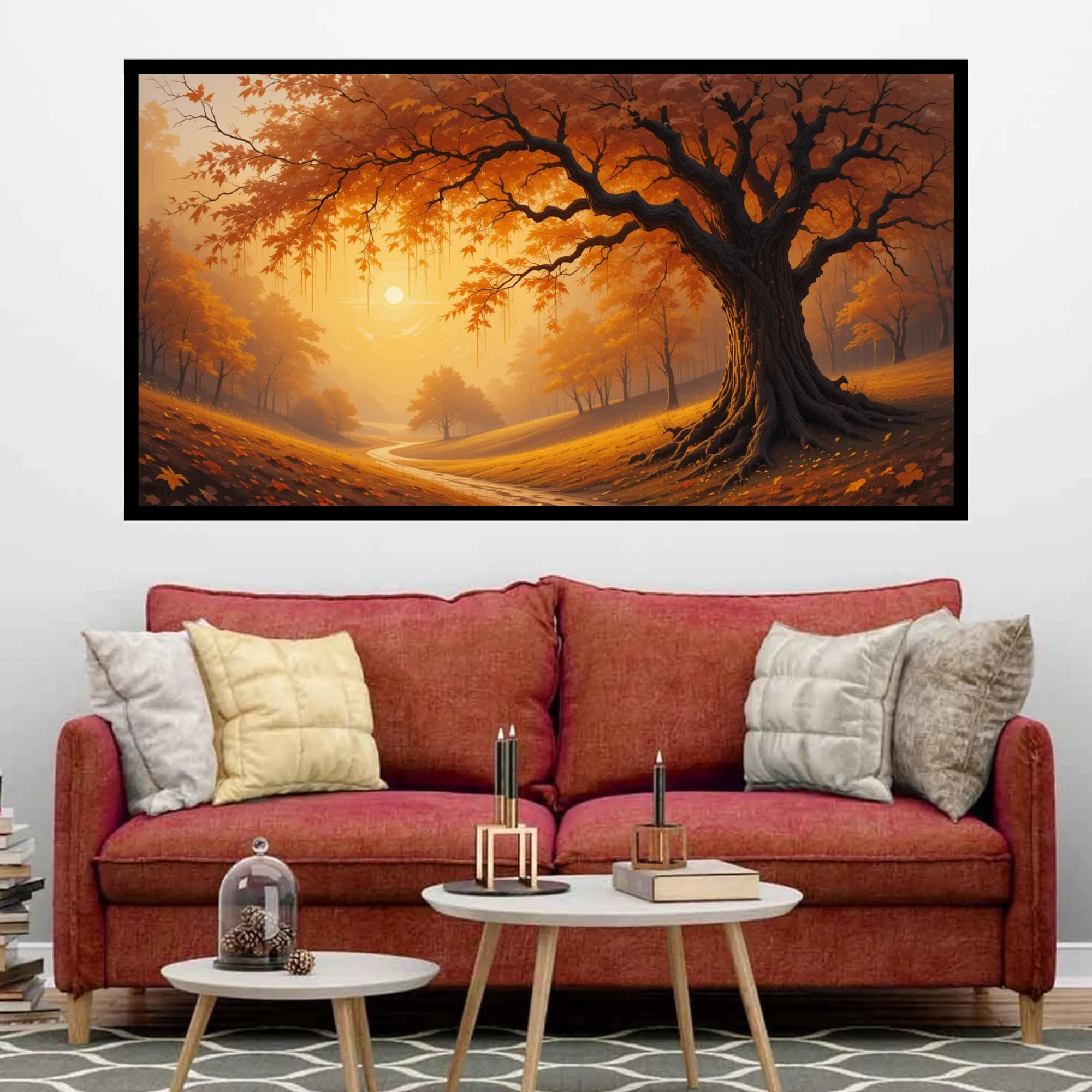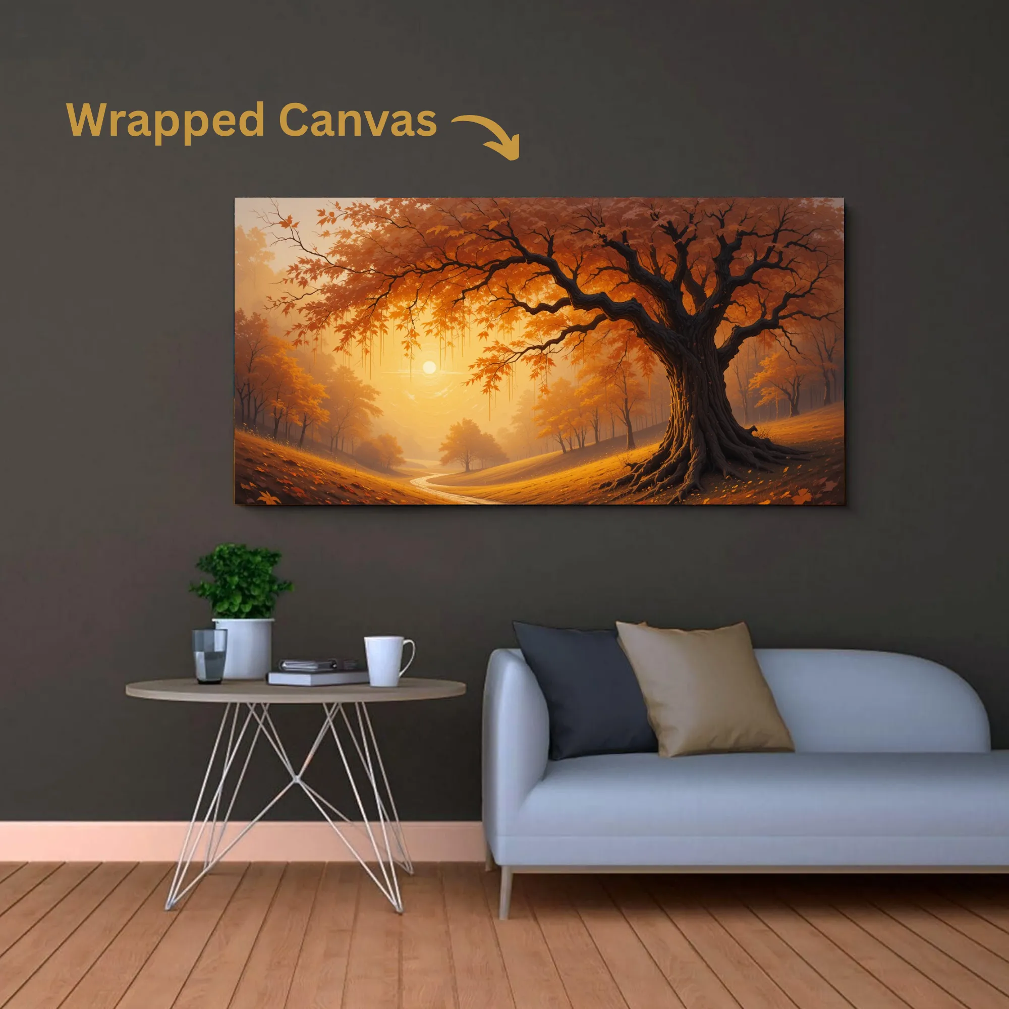 Amber Solace – Enchanted Autumn Tree Museum-Quality Cotton Canvas Art for Cozy Living Room Décor