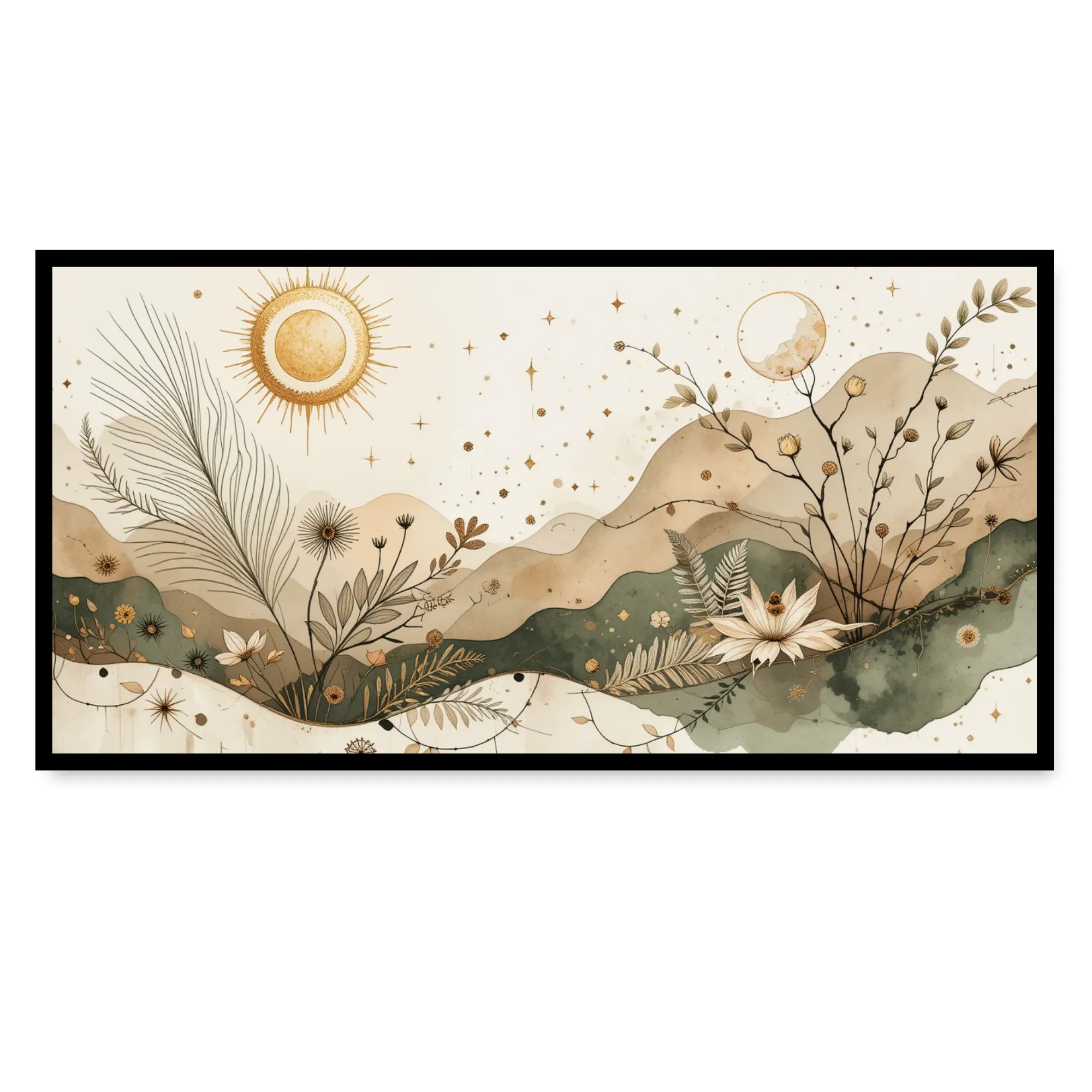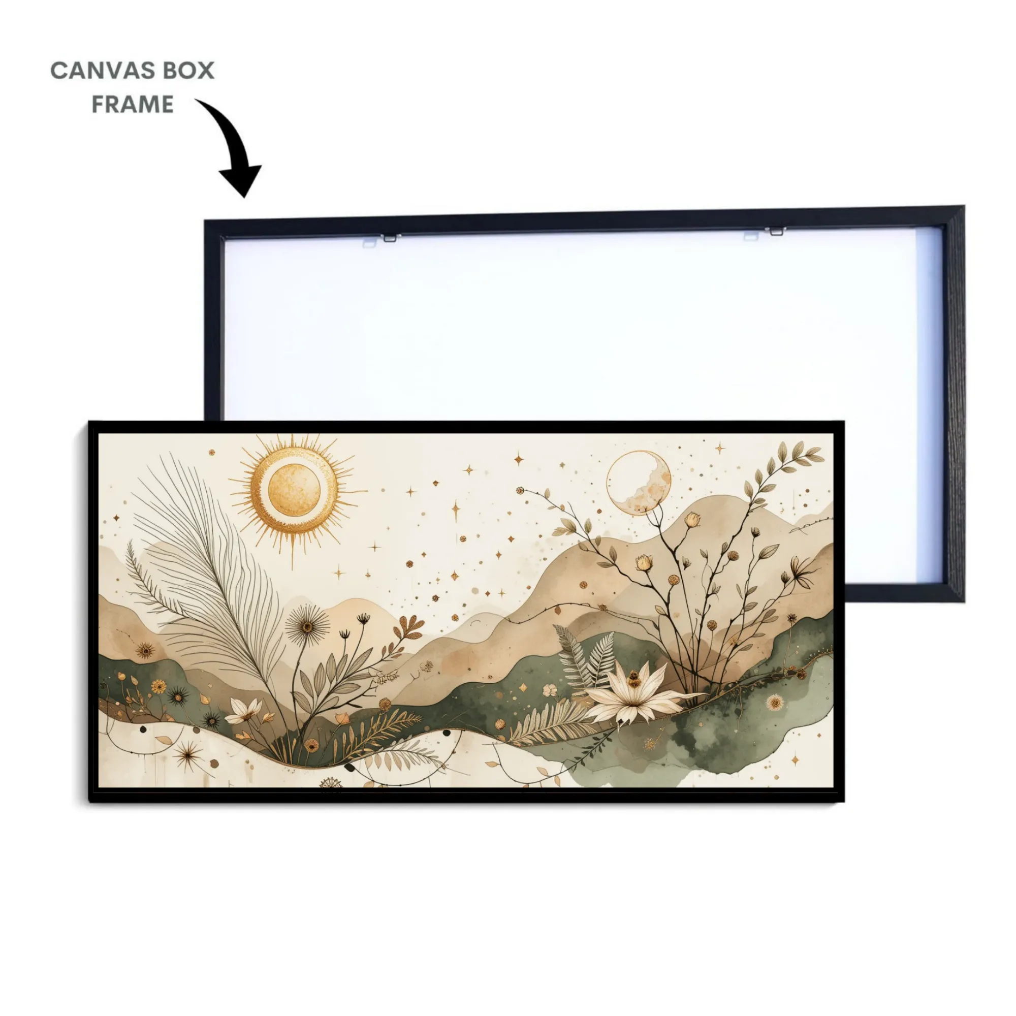 Each piece is set in a Solid Pine Wood Frame for strength and durability, paired with a Sleek Canvas Box Frame on the front for a modern, gallery-style finish. Built to protect and enhance your artwork for years to come.