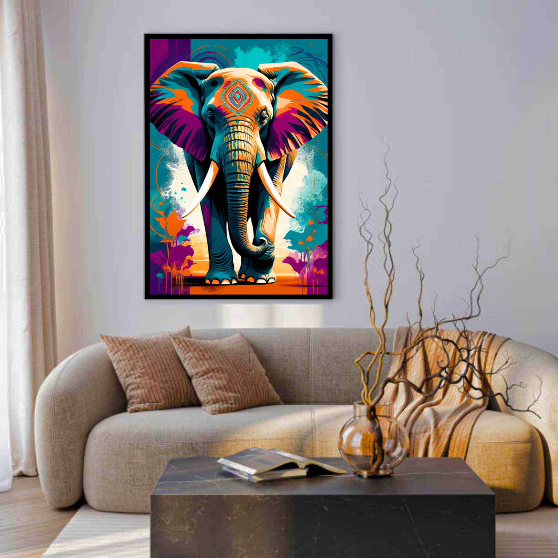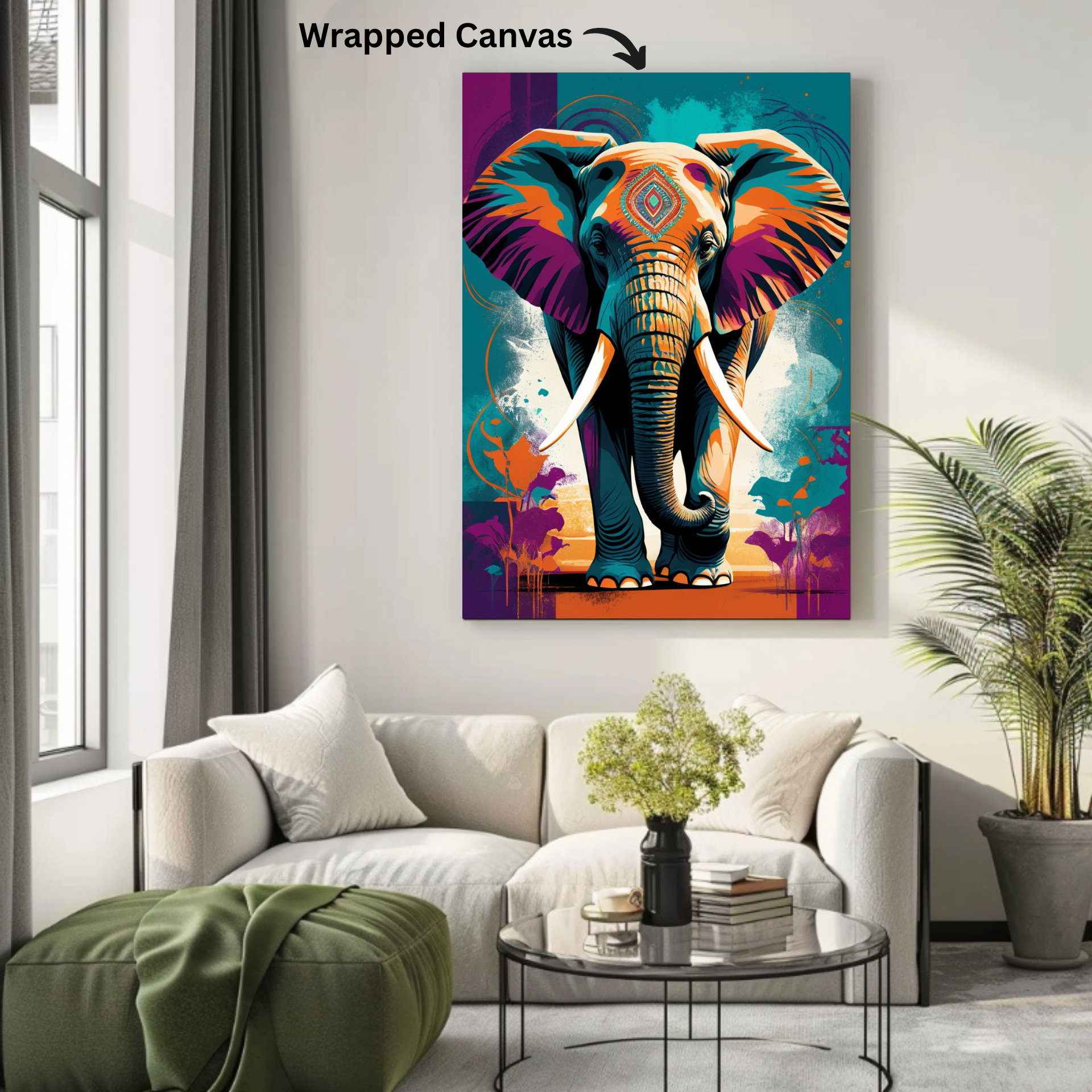 “Boho Charge – Tribal Safari Elephant” is a museum-quality cotton canvas art, crafted to bring vibrance, confidence, and artistic flair into your space. Showcasing a majestic elephant adorned with bohemian tribal patterns in bold shades of teal, tangerine, magenta, and turquoise, this artwork beautifully reflects the essence of strength, wanderlust, and modern safari elegance Décor.