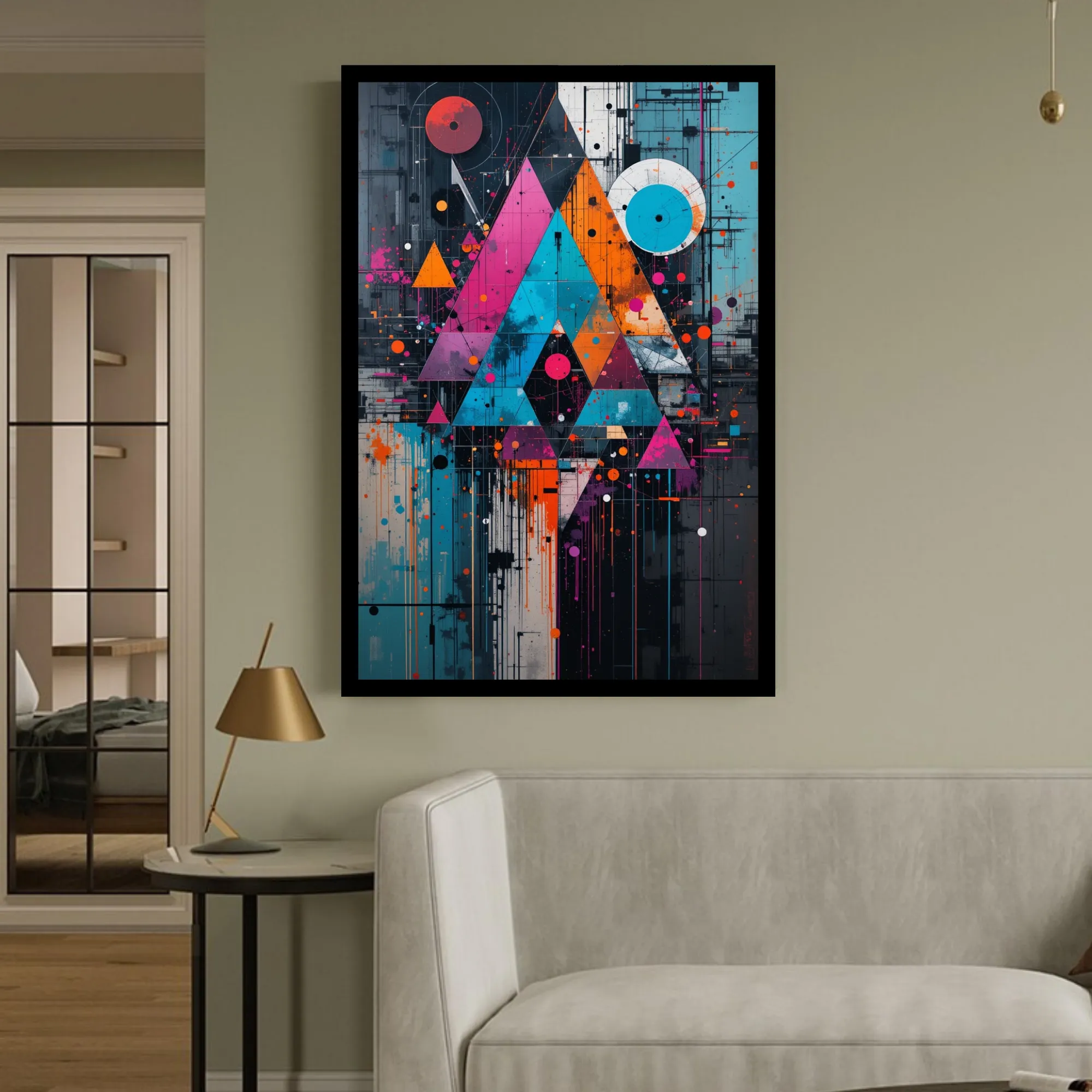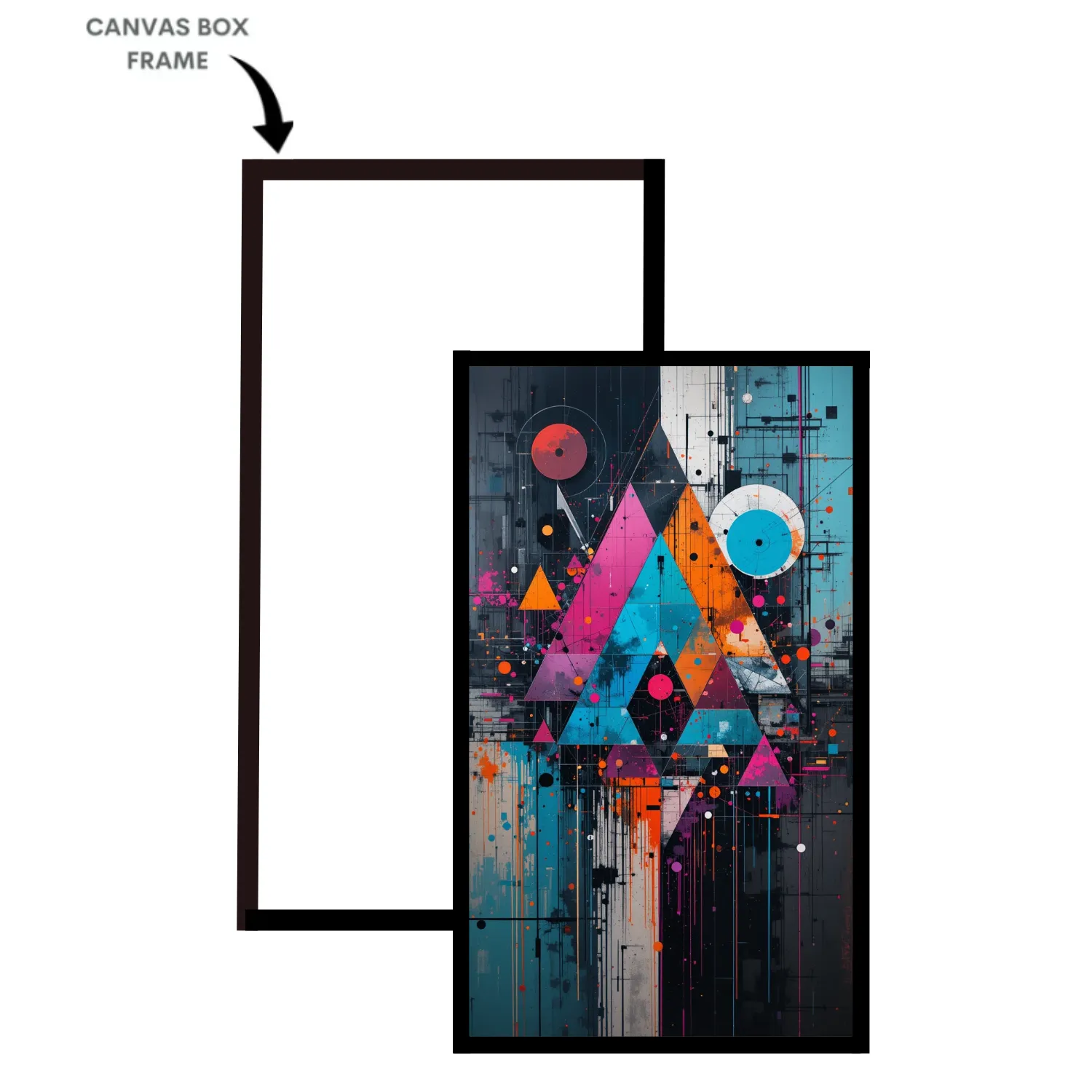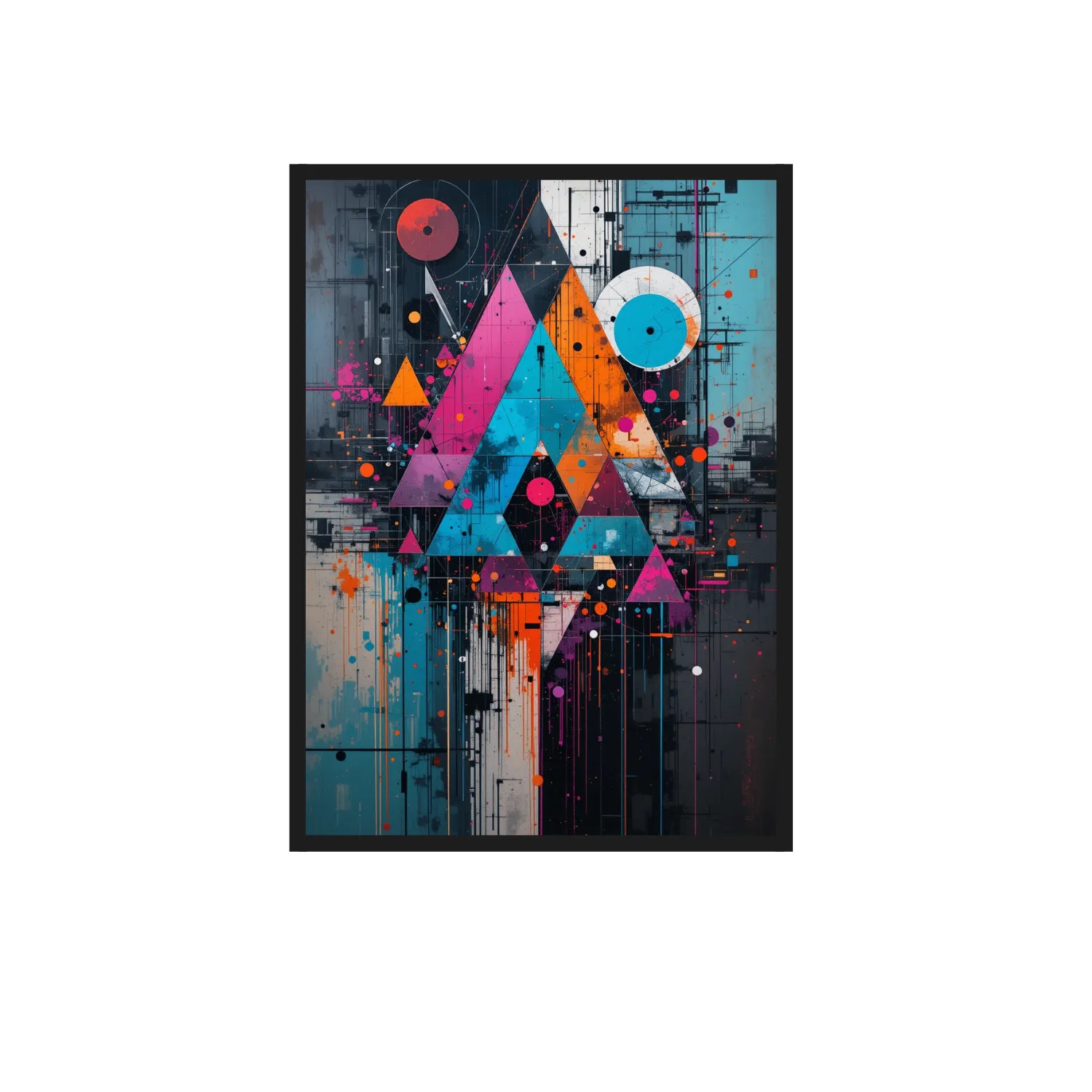 “Eclipse Vector – Geometric Neon Pulse” is a museum-quality cotton canvas art, crafted to bring energy, boldness, and contemporary sophistication into your space. Showcasing a dynamic interplay of triangles, circles, and vivid splashes in vibrant shades of magenta, orange, turquoise, and midnight blue, this artwork beautifully reflects the essence of futuristic design and urban elegance.
