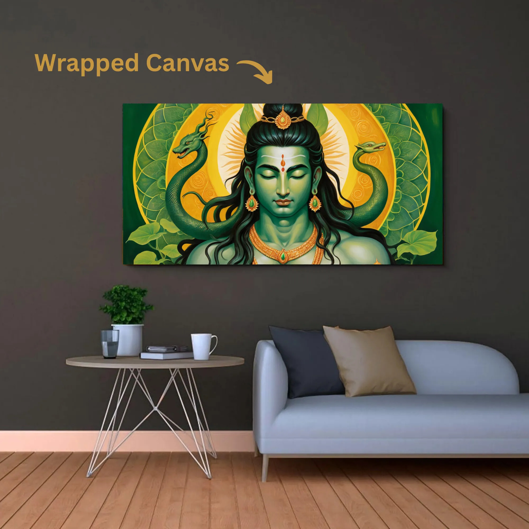 The circular halo and foliage blend traditional and contemporary elements, symbolizing new beginnings and the flow of transformative energy. More than just wall décor, this premium cotton canvas print embodies Shiva’s symbolism of change and resilience.
