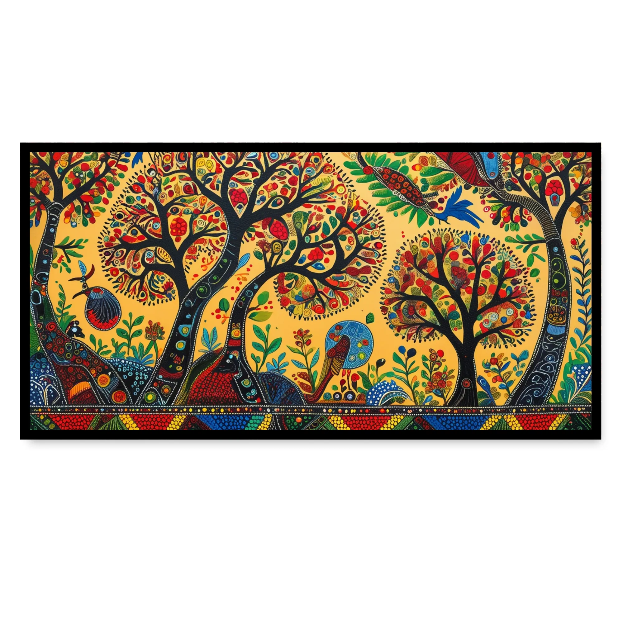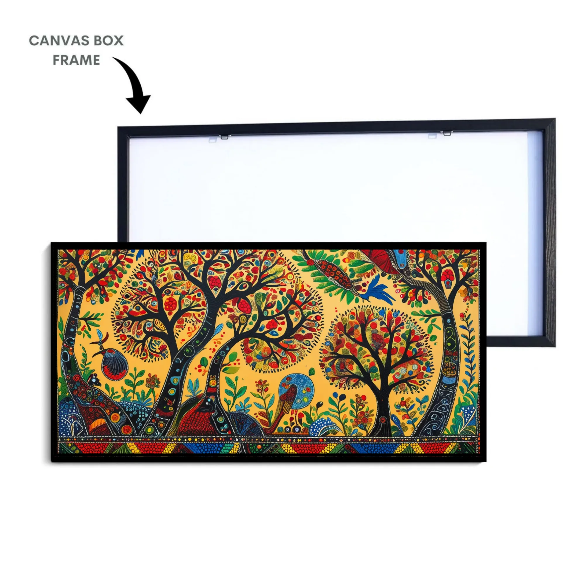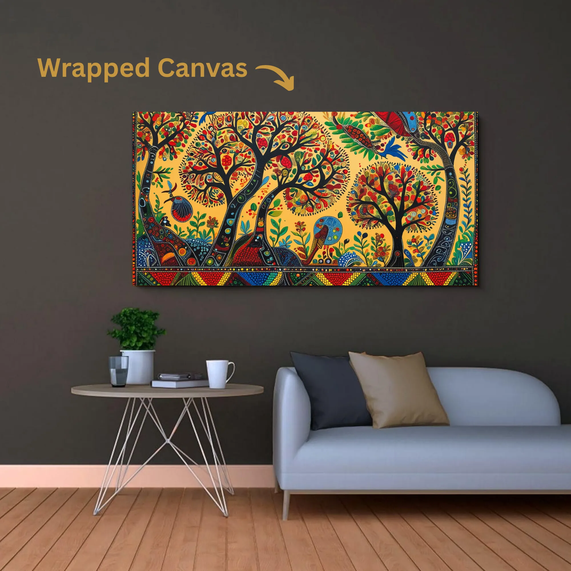 Folk Canopy – Madhubani Tree of Life Museum-Quality Cotton Canvas Art for Living Room Décor