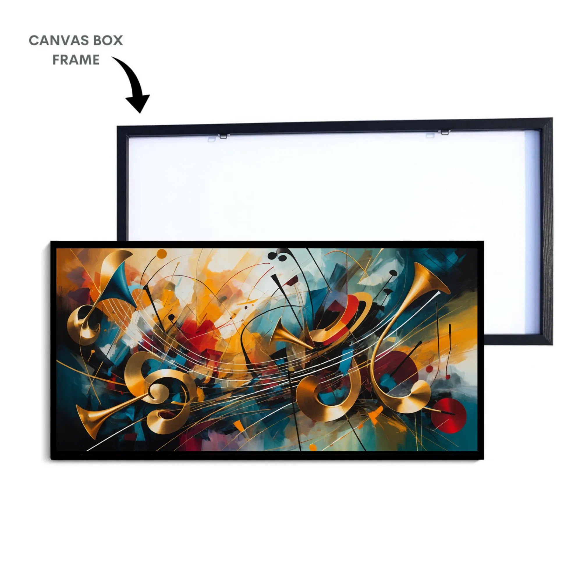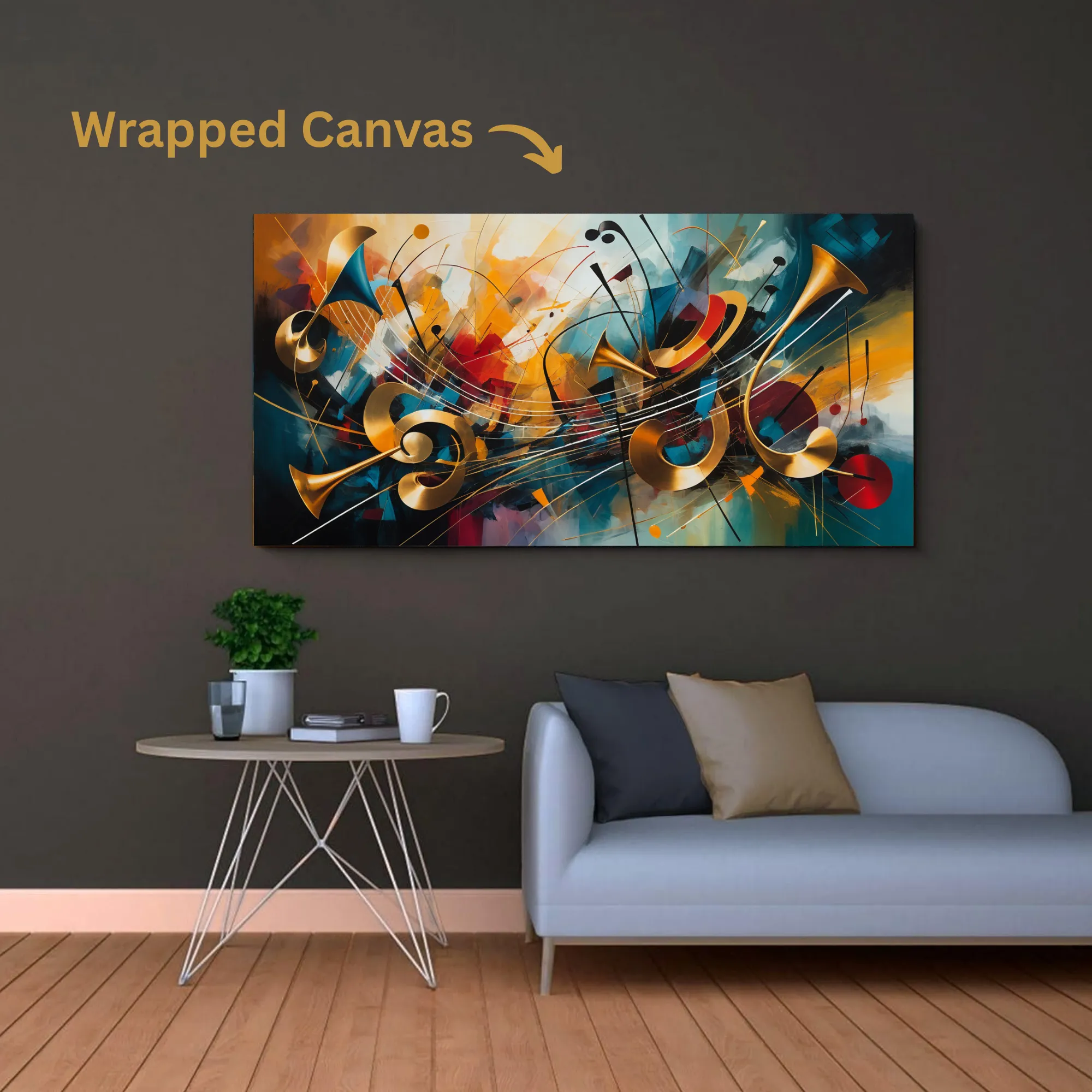 The vivid, swirling background adds a contemporary flair, symbolizing the rising energy, passion, and emotion unleashed by an orchestral crescendo. More than just wall décor, this premium cotton canvas piece carries the timeless meaning of the symphonic brass—representing triumph, joy, and creativity—making it a statement piece for any room.