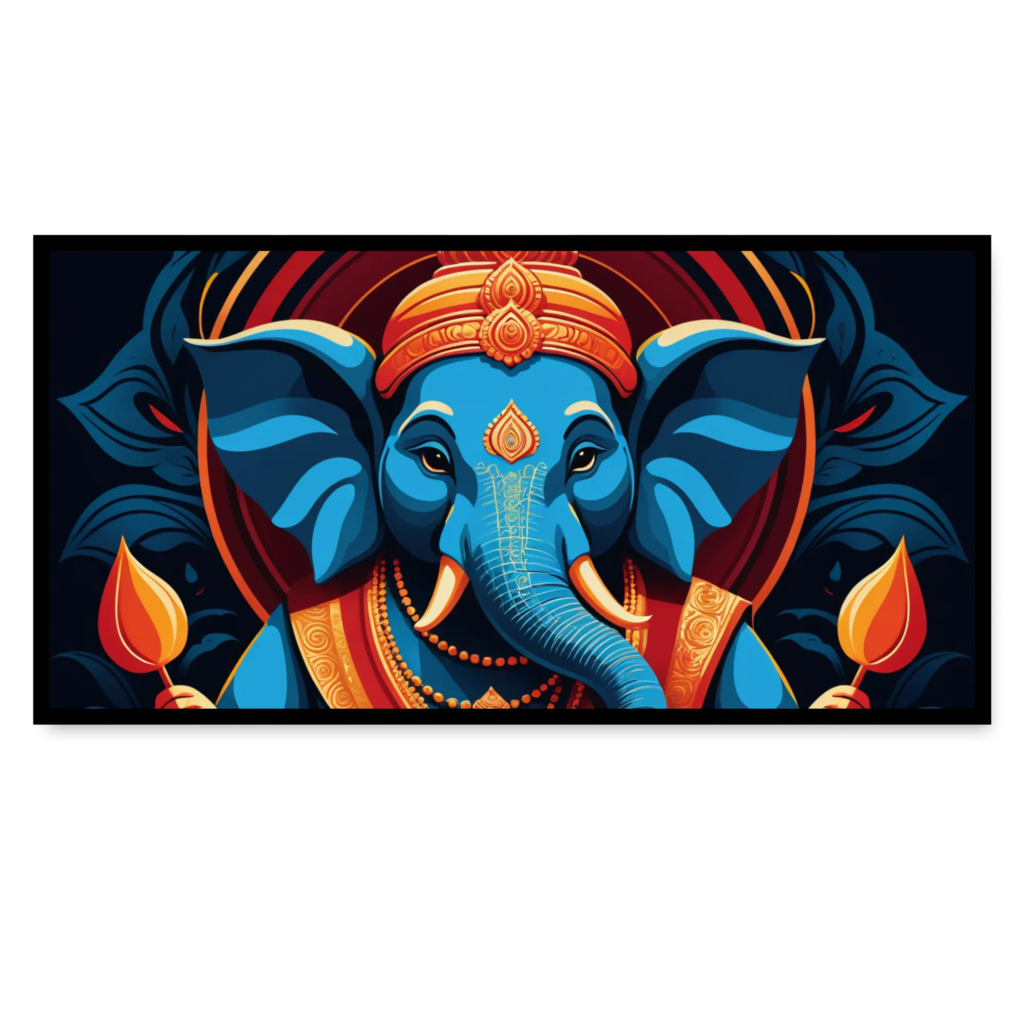 “Midnight Blessings” is a museum-quality cotton canvas art, crafted to bring strength, style, and divine inspiration into your space. Showcasing Ganesha in bold blue and golden hues set against a striking midnight background, this artwork beautifully reflects the energy of fortune and protection.