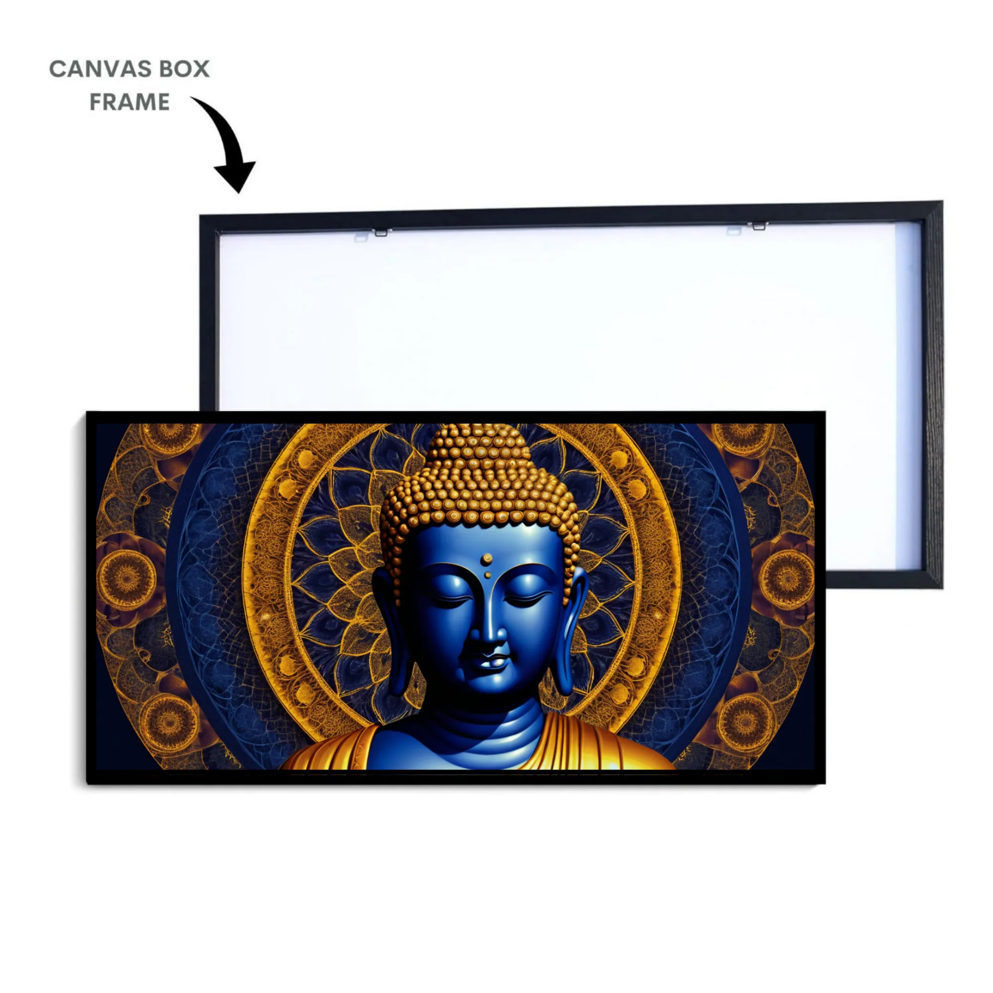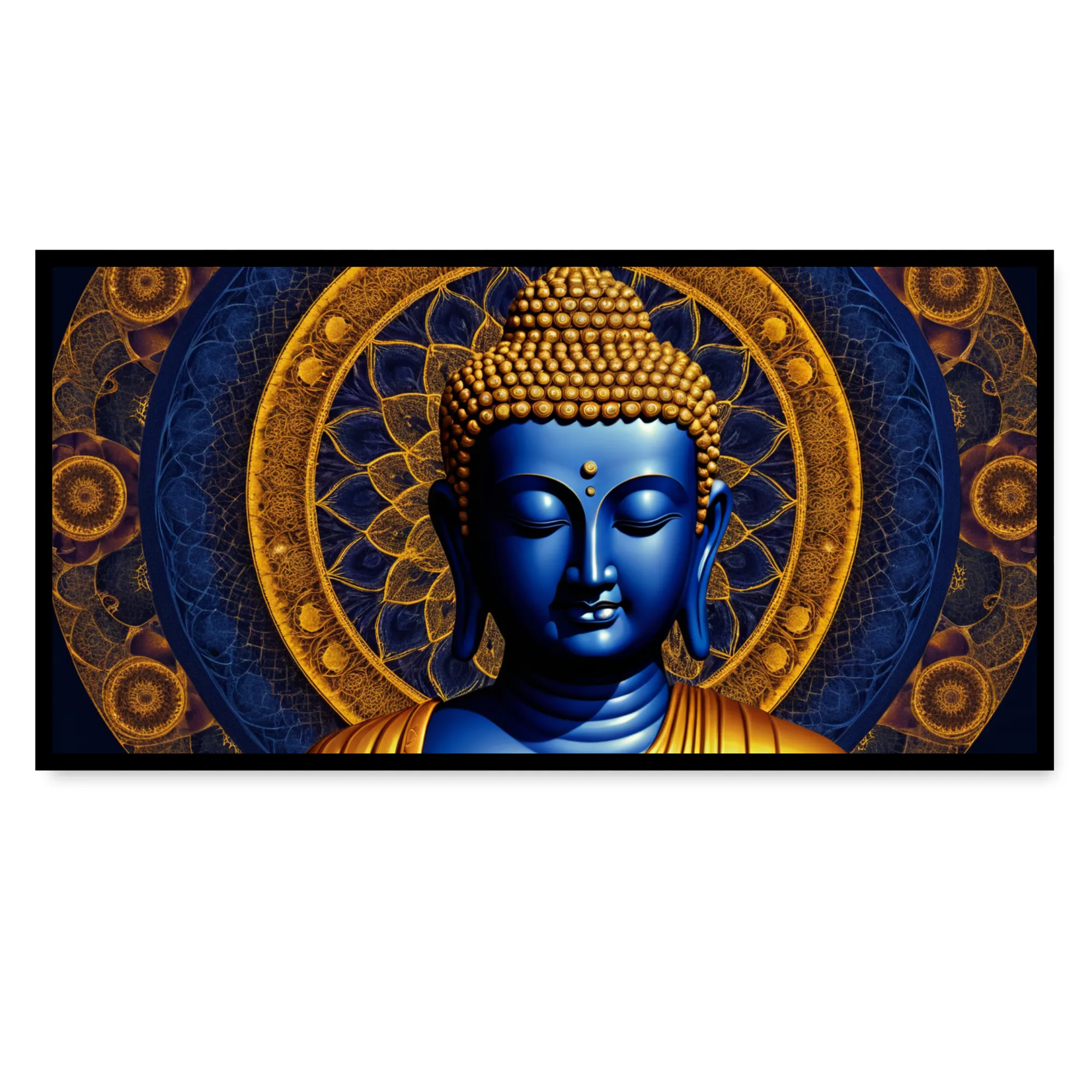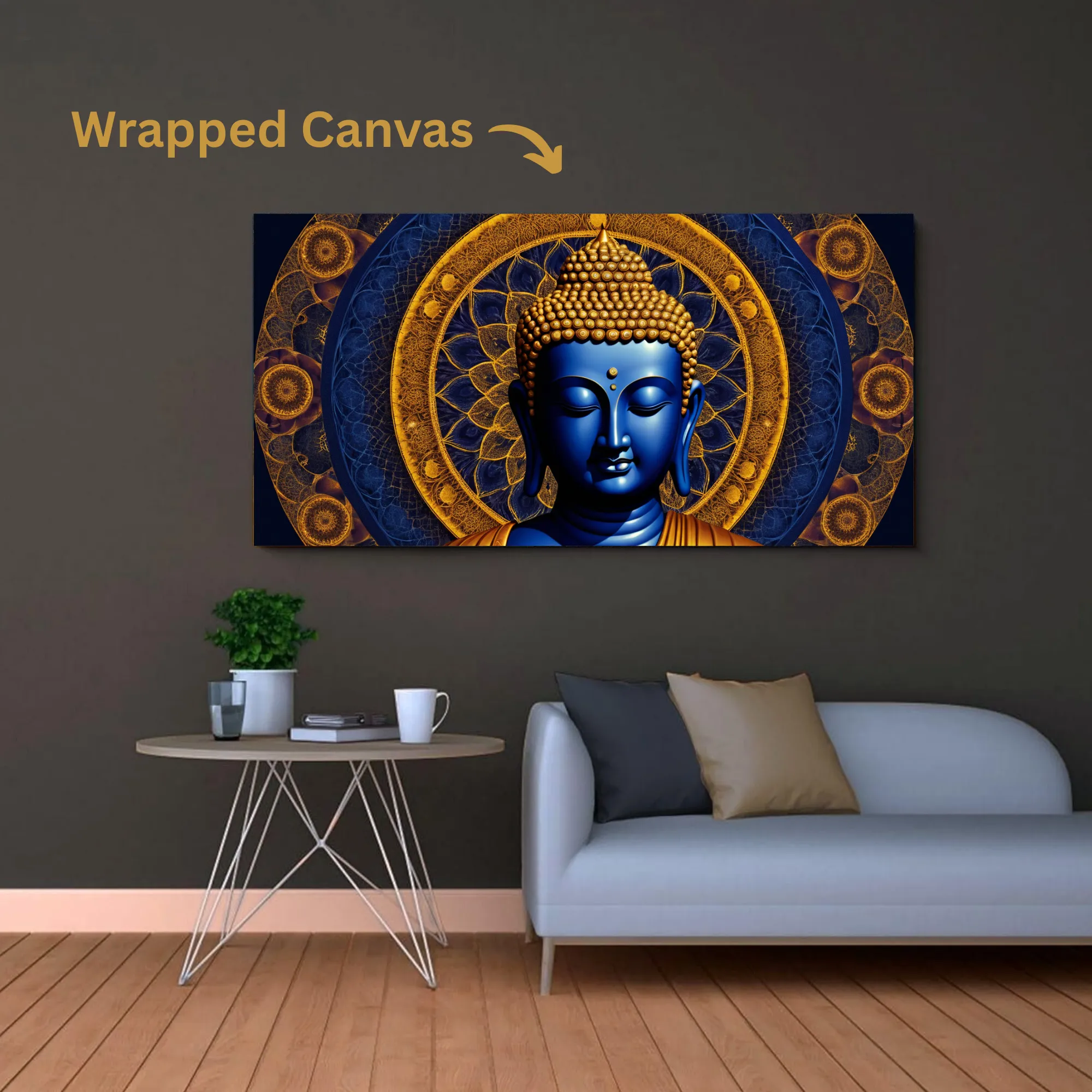 Mystic Aura – Sapphire Buddha Museum-Quality Cotton Canvas Art for Study or Meditation Décor