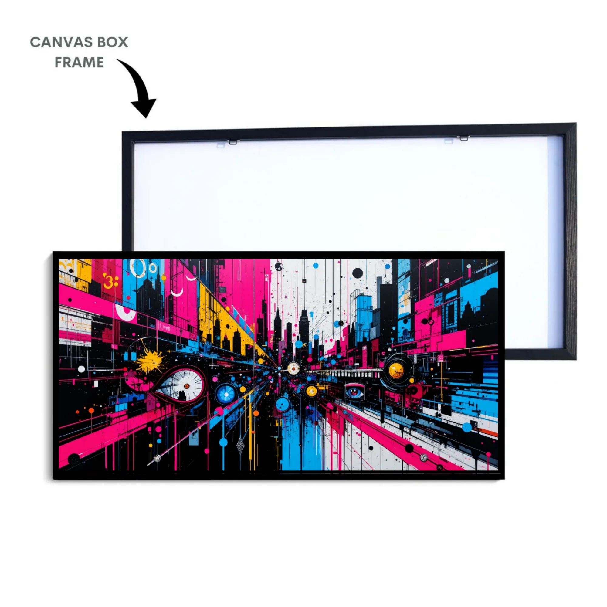 The dynamic vanishing-point layout and electrifying palette add a contemporary flair, symbolizing progression, perception, and the alluring flow of urban dreams. More than just wall décor, this premium cotton canvas print channels the fusion of art and metropolis, making it a dramatic conversation piece.