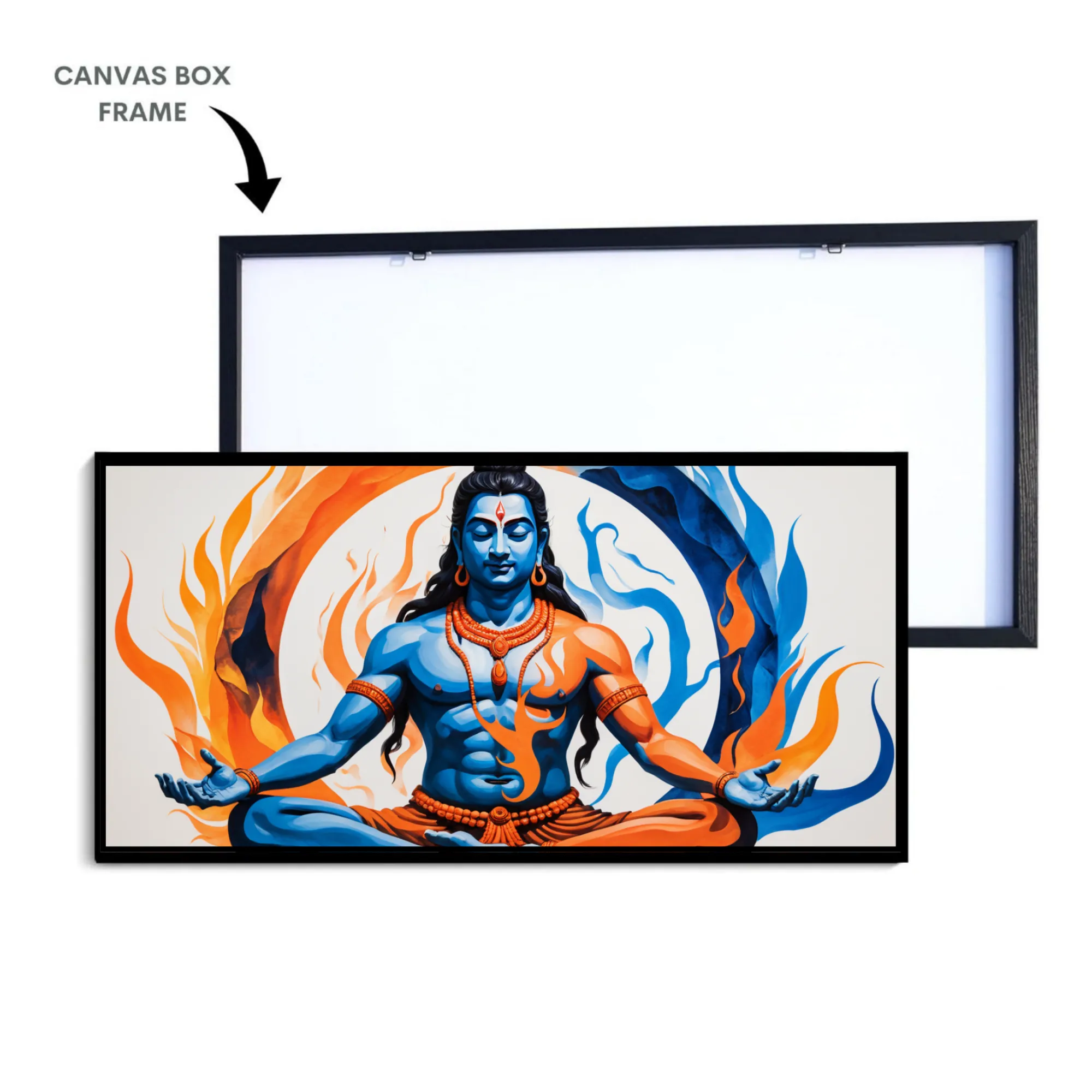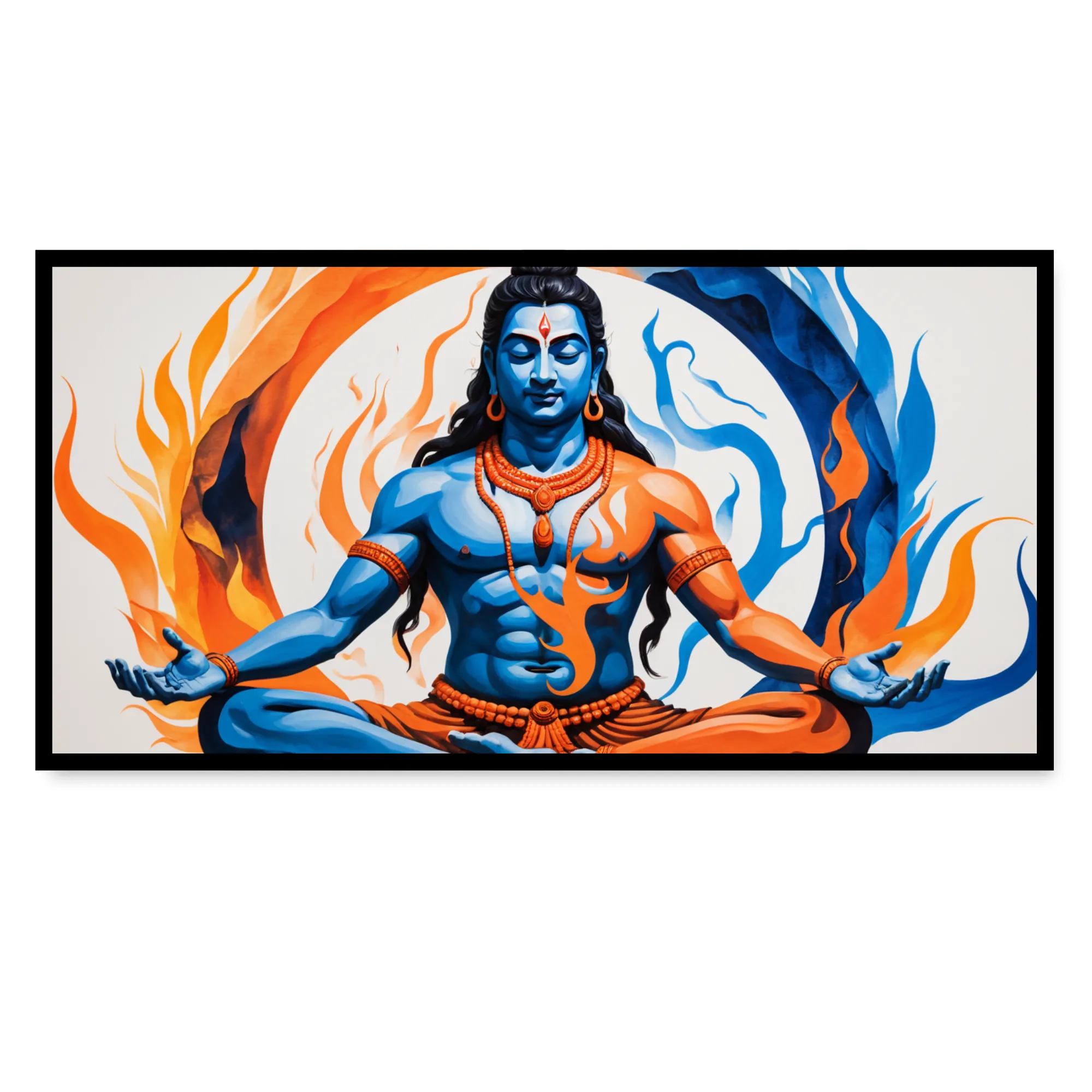 “Shiva’s Elemental Dance” is a museum-quality cotton canvas art, crafted to bring energy, balance, and vibrance into your space. Showcasing Shiva in dramatic blue and orange—fire and ice—this artwork beautifully reflects the essence of dynamic transformation and equilibrium.