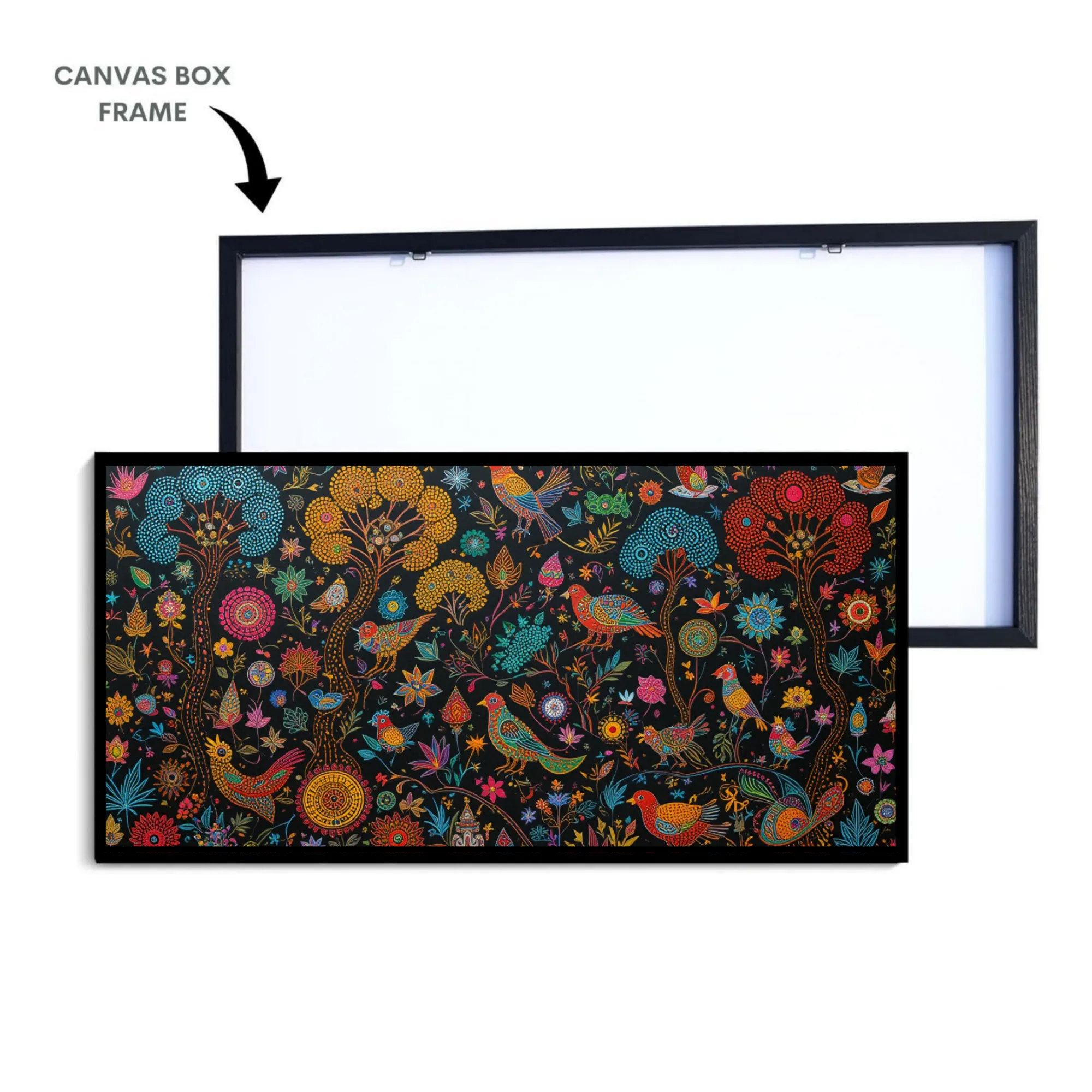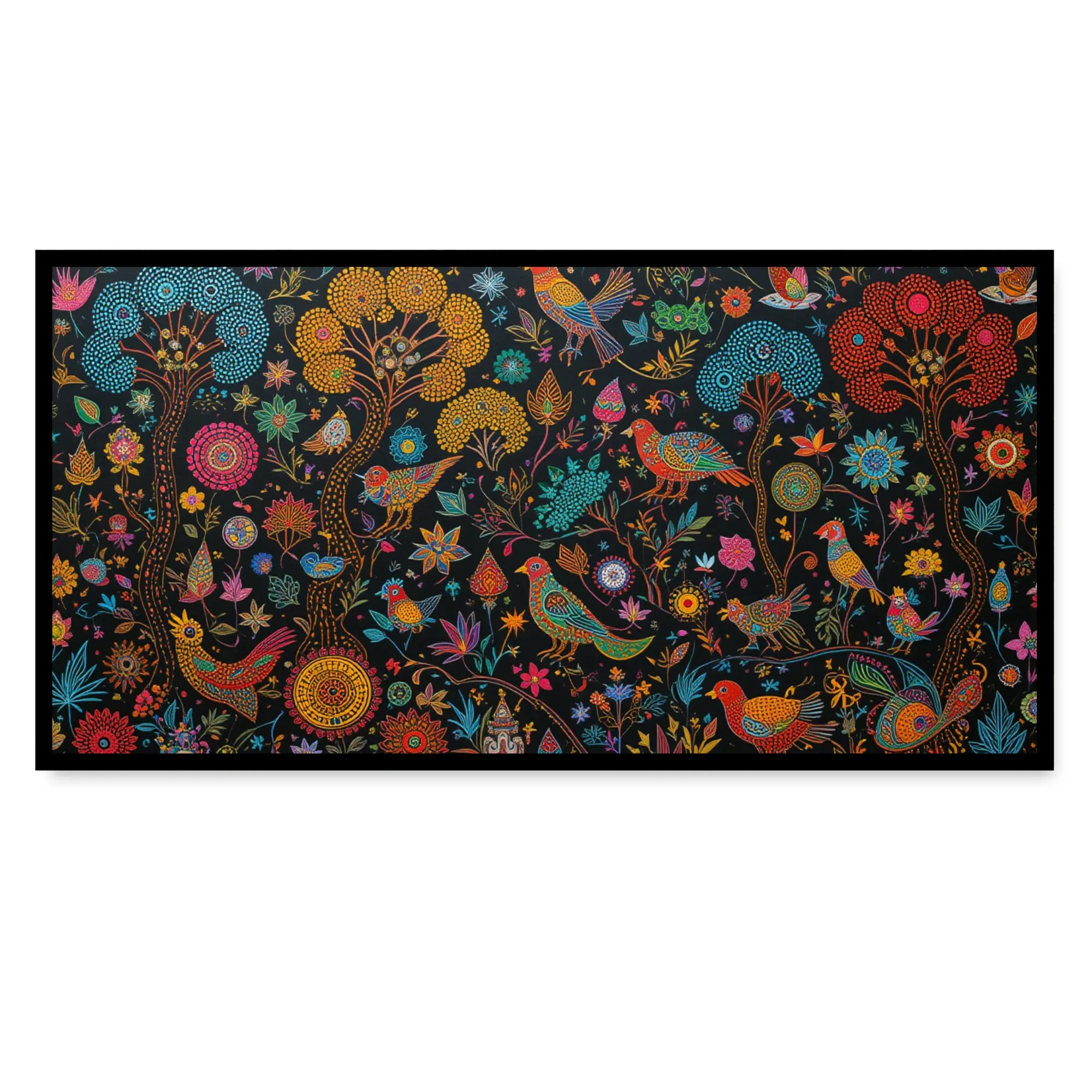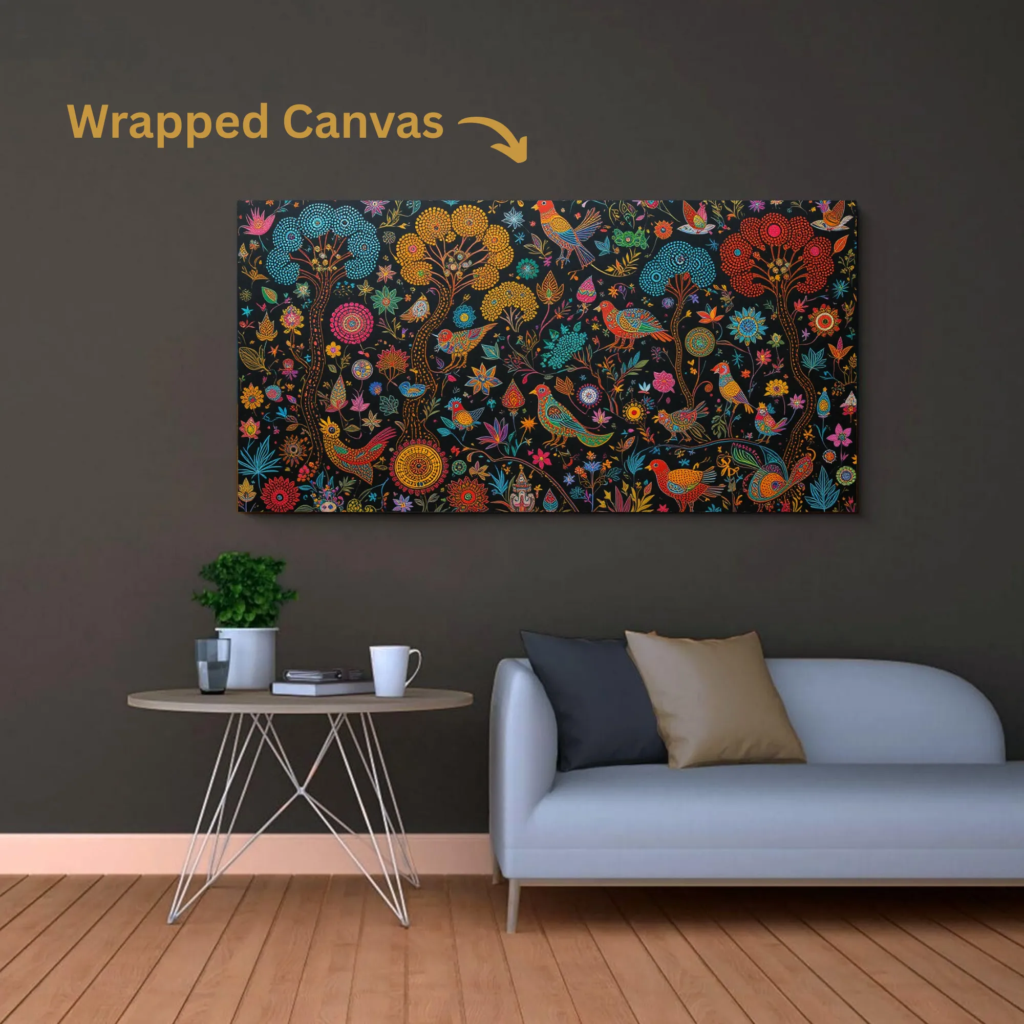 Songbirds’ Canopy–Folk Paradise Museum-Quality Cotton Canvas Handprint for Living Room Décor