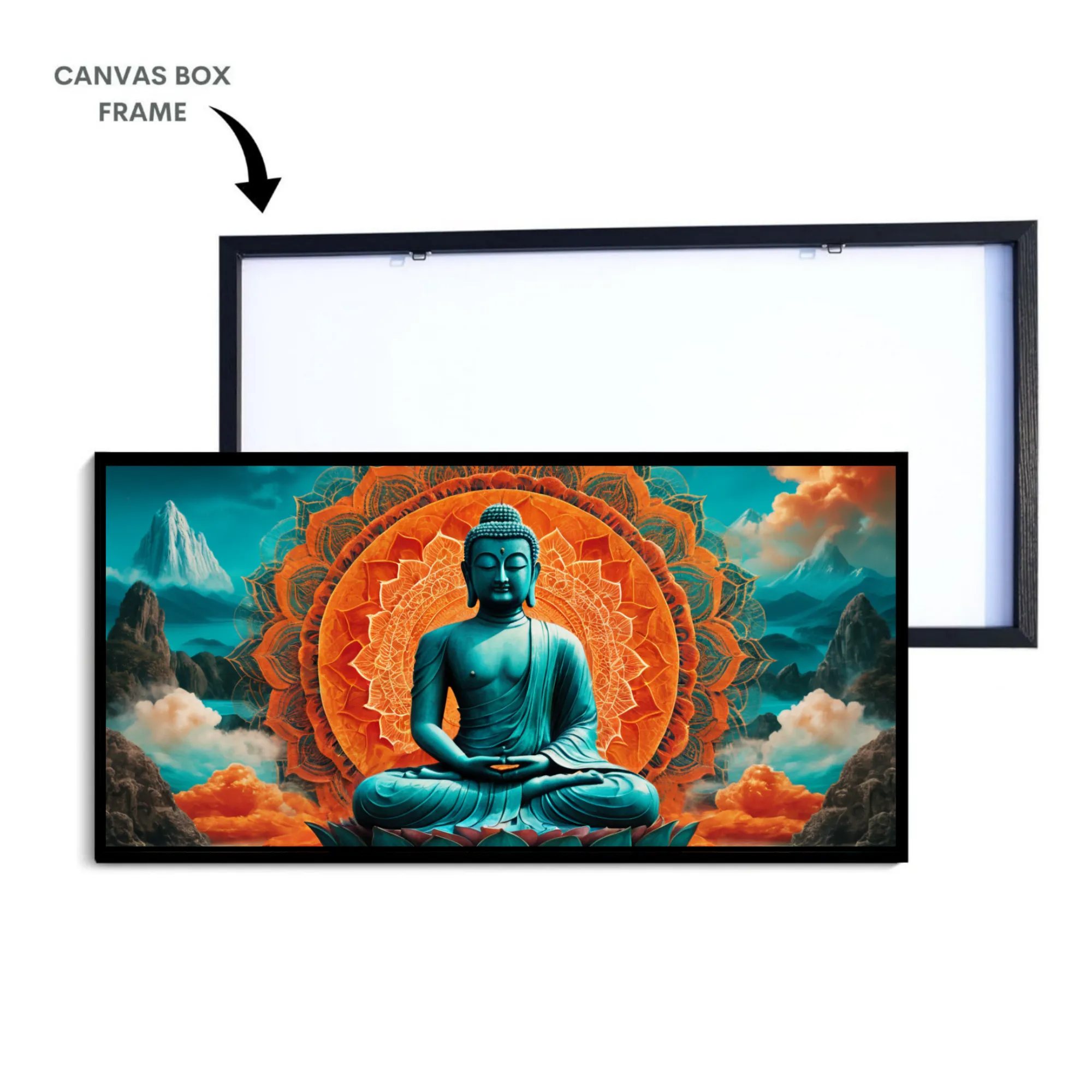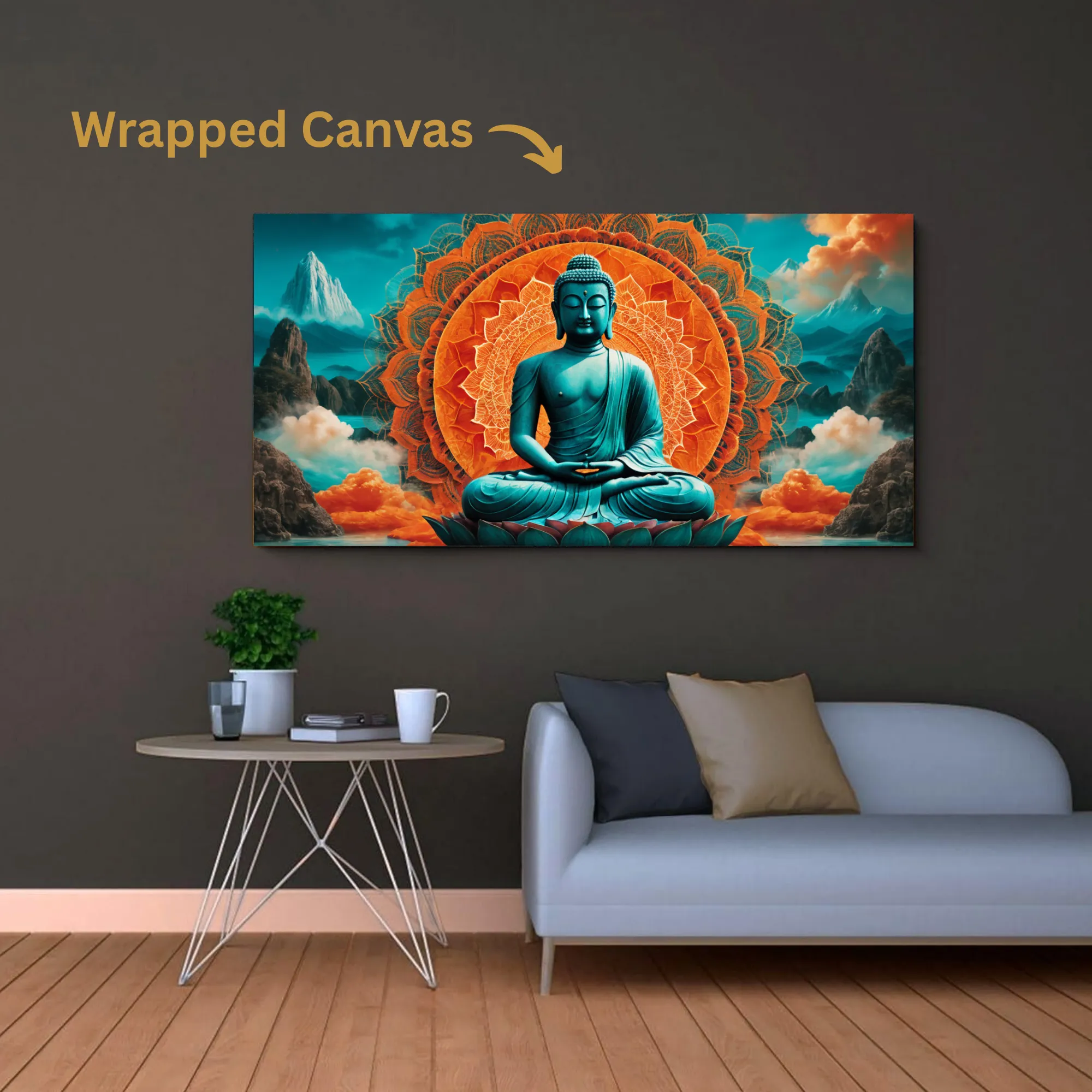 The vibrant landscape background infuses a contemporary yet timeless spiritual energy, symbolizing elevation, wisdom, and calm aspiration. More than just wall décor, this canvas celebrates Buddha’s presence as a guiding light for peace and purpose.